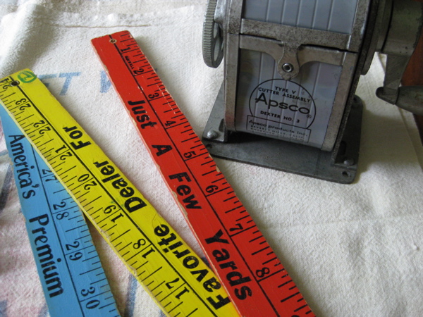 Boys' room and My craft room: The colored rulers below were added to the side of the doorjam in the boys' bedroom. We'll use them to mark their growth and if we move...we can take 'em with us. The vintage carpenter rulers will be used as frames. The pencil sharpener? What better way to mark kindergarten than with a pencil sharpener mounted on the wall. I predict this baby will get a lot of use over the years.