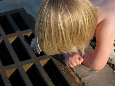 This same little loves to look down drain holes too. I snapped the above pic while he was screaming. "ECHO!"