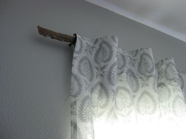 curtains that have just the right touch of grey and the perfect weight to keep one's privacy and let in the light. However, after spending $25.00 on the curtains, I just couldn't see myself dropping more cash on curtain rods. Enter - bulk trash rummages. Luckily, I didn't have to go too far, I found some awesome branches in my neighbors trash pile. By simply trimming of the leaves and cutting them down to size, I got the perfect curtain rods.